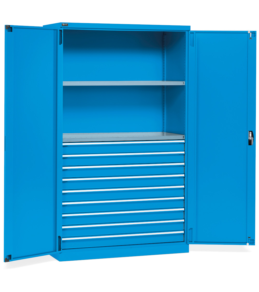 Vleugeldeurkast 1193x555x2000mmH (64x27Eh) PERFOM17007 met 2 legborden en 9 laden